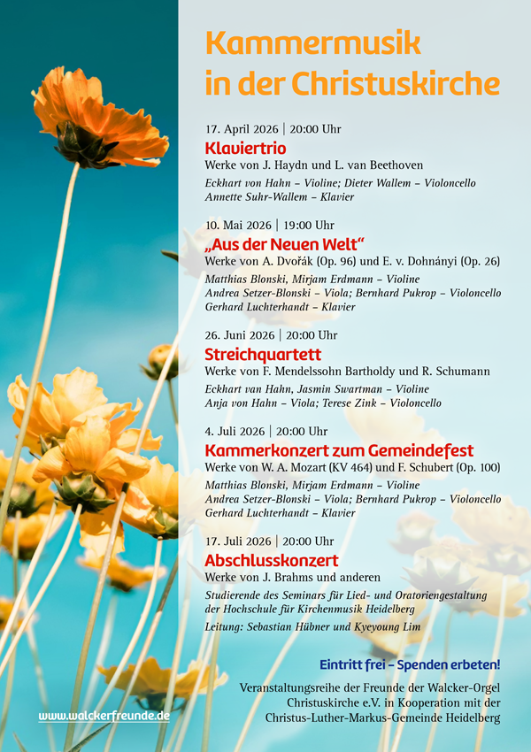 Aktuell laden wir Sie zu unserer diesjährigen Kammermusikreihe ein, die im April beginnt: